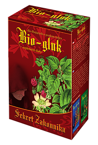 Bio-gluk jest mieszanką ziołową o działaniu regulujacym poziom glukozy we krwi. Zawiera w swoim