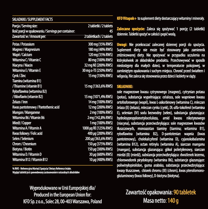 KFD VITAPAK+ WITAMINY I MINERAŁY 90 tab